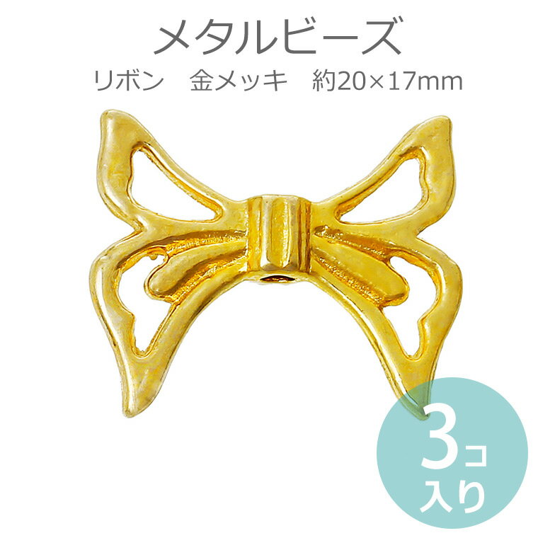 メタルビーズ リボン 金メッキ 約20×17mm 穴約1.8mm(3個入)/ スペーサー 合金製 ゴールドカラー 銀色 りぼん ちょうちょ シルバーカラー 【ゆうパケット対応】